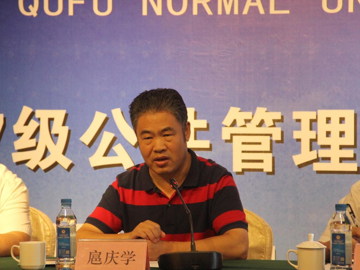 扈庆学首先代表学校对于新遴选的MPA导师和2017级MPA新生表示热烈欢迎和祝贺。扈庆学指出,在过去的一年我校MPA教育取得了突飞猛进的发展,招生人数达到创纪录的133人,在2016年中国公共管理专业学位教学案例中心教学案例入库评审中,我校MPA任课教师编写的案例共有19篇入选,其中10篇为修改后直接入库案例,直接入库案例数量名列山东省第一位、全国第三位。扈庆学强调,学校对于MPA教育高度重视,对于我校MPA教育取得的成就给予充分肯定。