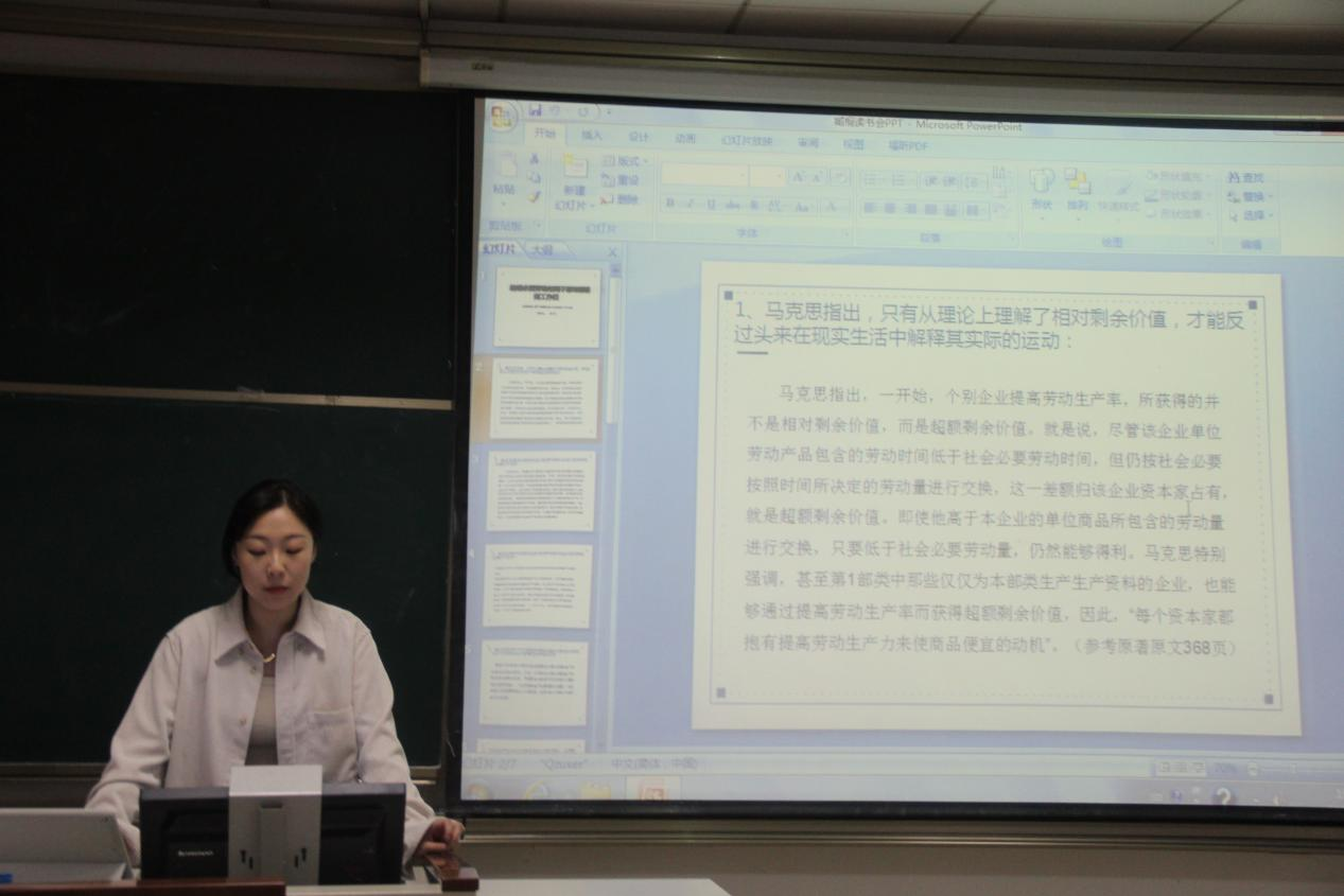 随后,2021级亓倩同学也分享了《资本论》的读书心得。在基于《资本论》第一卷剩余价值理论基础上,结合“异化劳动”提出学界在人工智能发展迅速的现实背景下综合政治经济学、哲学等提供的新成果着重研究了物质生产劳动与非物质生产劳动的本质、数字劳动异化(人工智能异化)、剩余价值与异化劳动的关系、剩余价值的源泉深化了马克思异化理论的研究。结合《资本论》展开,将理论与现实相联系,引人深思。