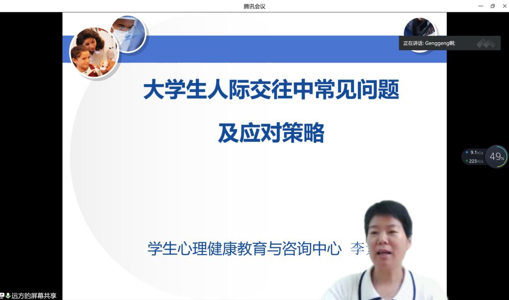 会议伊始,李素芳老师采用情景模拟和案例展示的方式,详细介绍初入大学容易产生的几类不健康心理,并提出在人际交往中大学生应保持积极向上和健康的心态的应对策略,帮助同学们清楚认知自己内心和培养积极阳光的心理状态。