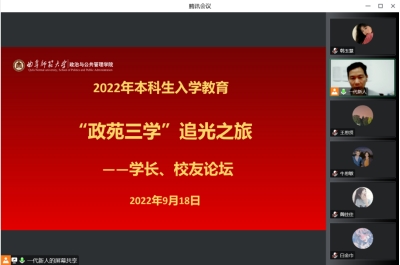 按照“政苑三学”特色育人工程开展的向学长学系列工作之一,优秀学长的学习、科创、工作等多方面的宝贵经验,为新生更快更换适应大学生活提供有效帮助。