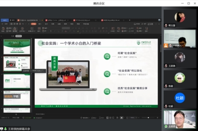学长王思贤着重在社会实践方面向新生提出建议,他从“社会实践”、“社会实践”何以深化、优秀案例分享三个部分,逐步深入,引领新生了解并走进社会实践,鼓励学生深入社会、深入基层、深入群众、了解国情、接受锻炼,敲开学术入门砖。