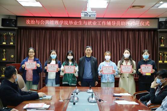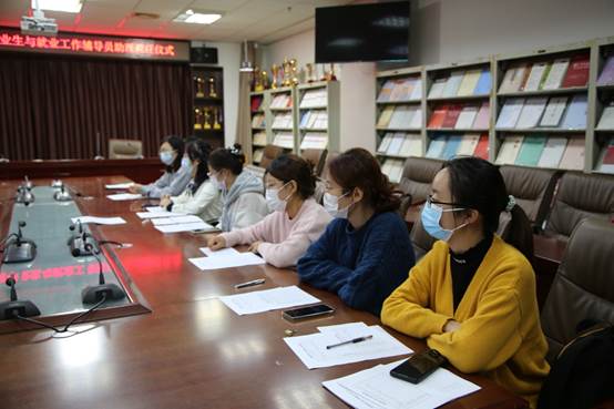 于JC909举行毕业生与就业工作辅导员助理聘任仪式。学院团委书记马腾、辅导员王元如、耿晓敏出席,部分辅导员助理及部分学生干部参加。