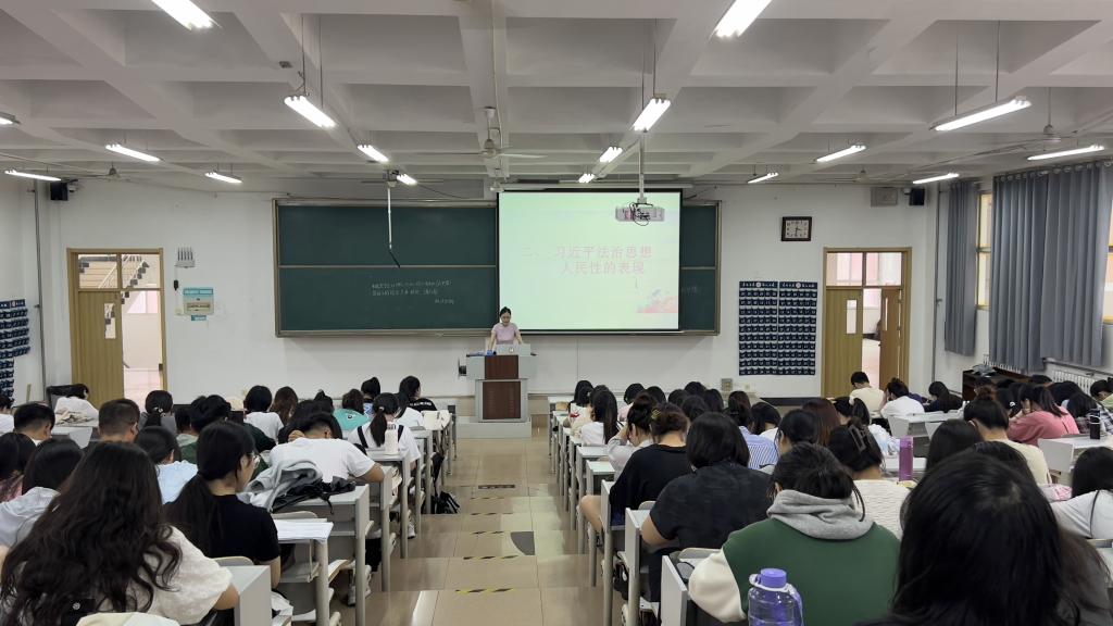 本次主题教育班会以“深刻认识习近平法治思想的人民性要义”为主题,围绕习近平法治思想人民性内涵、人民性表现两个方面展开。2020年11月16日至17日,党的历史上首次召开的中央全面依法治国工作会议,正式提出习近平法治思想并将其明确为全面依法治国的指导思想。习近平法治思想是符合我国国情、顺应时代要求的科学理论。人民是全面依法治国的主体和力量源泉,人民性成为贯通习近平法治思想的价值红线和逻辑主线。习近平法治思想的人民性秉承马克思主义的实践观点和方法,在法治实践的各个环节始终践行人民至上理念,积极回应了新时代人民群众对于法治建设的新需求。