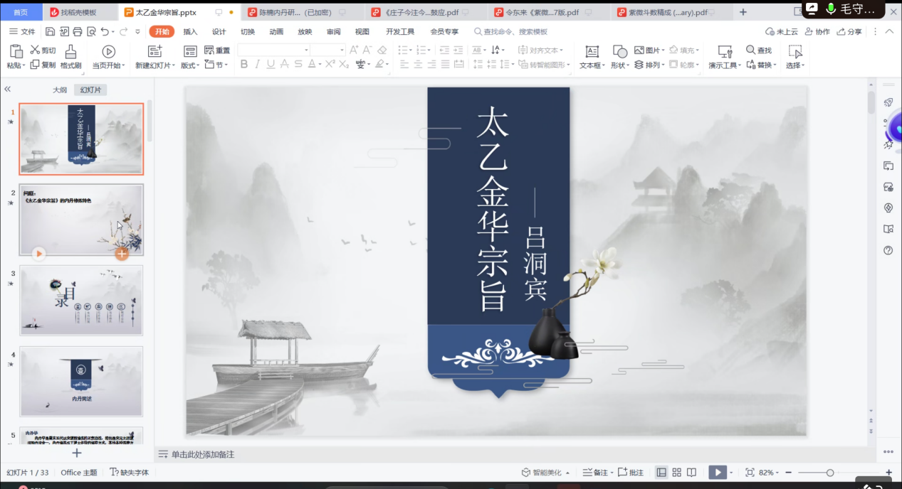 2022级毛守华同学分享的书目是道家内丹学经典《太乙金华宗旨》,他从《太乙金华宗旨》的来历归属、理论体系、修炼特色三个方面介绍了本书的内容,毛守华同学的分享简洁生动、娓娓道来,收到了老师同学们的一致好评。