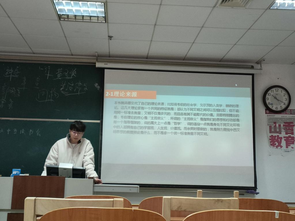 2023级秦焌岚同学分享了余英时《论天人之际》,认为不同文明之间可以互相比较,但不能用同一标准去衡量,文明不仅是多元的,而且各有其不能取代的价值。而余英时要做的,就是努力爬梳中西文明思想的前提预设是什么,而不是拿一个统一标准衡量不同文明。