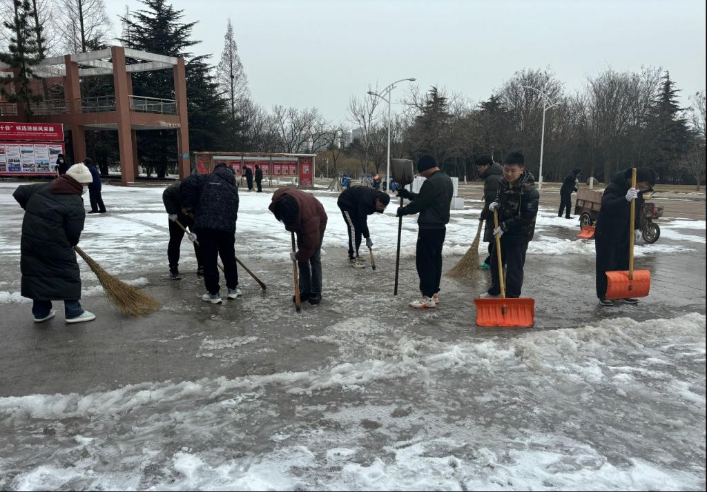 本次志愿服务行动在确保参与人员安全的前提下根据校院实际情况开展。学院统一领取除雪工具,并派专人负责,志愿者对校园内主要道路、出入口等主要区域的积雪以及墙体冰凌等进行充分清理,清扫完成后组织志愿者集中存放处理清扫出的积雪和冰块。