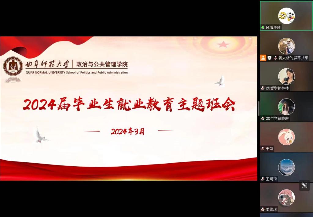 2020级各班分别召开毕业生就业教育主题班会。本次班会采用线上线下相结合的方式,2020级辅导员耿晓敏、张文静,班主任程霞、丁鹏、张玉志、孟祥兴、刘祥乐、李永刚作为主讲,2020级各班同学积极参加。