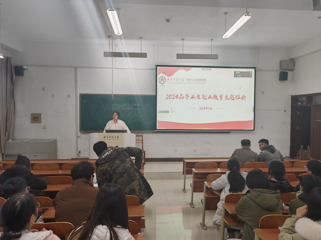 本次就业教育主题班会围绕积极心态、找准就业方向,到基层去、到西部去,征兵入伍、报效祖国和如何应对就业焦虑四个方面展开,重点对考研复试准备、考研调剂、就业方向的多项选择以及缓解就业压力进行了讲解,既对毕业生进行正确的就业引导,也对毕业生进行心理疏导,帮助2024届毕业生以积极向上的就业心态走进社会。