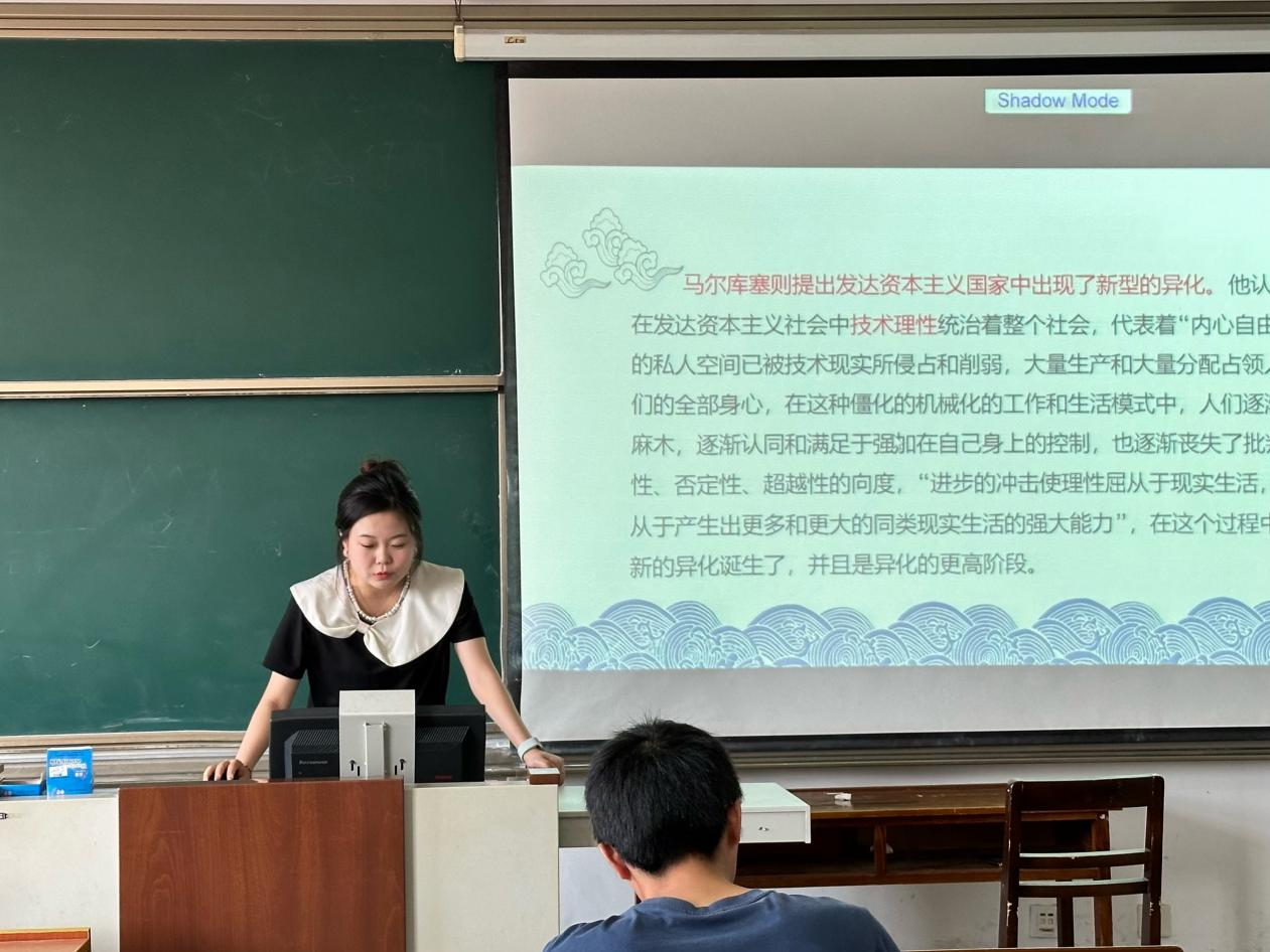 2023级张淑蕾同学从六个方面分享了马尔库塞《单向度的人》一书。她对书中的重要观点:何为单向度的人以及人的异化、虚假需求等理论做出了阐述,最后表达了对当今社会网络现象的反思与批判。