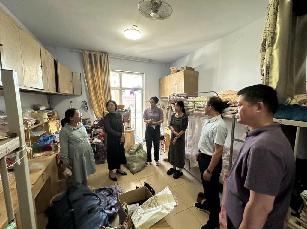6月17日下午,学院党委书记卢瑞霞、院长李增元、党委副书记张忠凯带领辅导员深入2024届毕业生宿舍走访,详细了解毕业生学习、生活、就业和思想情况,加强毕业生安全教育,引导毕业生安全、文明离校。
