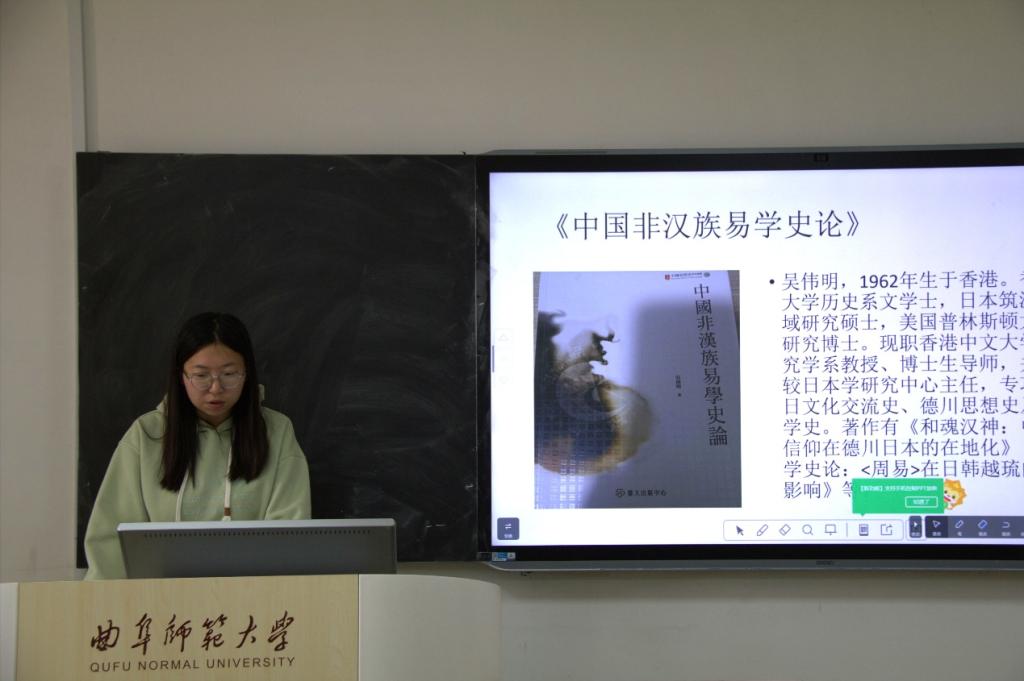 2024级陈心茹同学分享的是《中国非汉族易学史论》,她主要讲解了自己对中国非汉族易学的形成与特色的理解,还提出易学在当前国内研究具有多元性的特点,不同时代与学派对周易的研究和诠释、对易学与占卜在众多范畴的应用是否具有区别的问题。