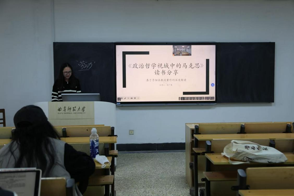 2025级徐广慧同学基于李佃来教授著作《政治哲学视域中的马克思》,梳理了其思想起源与现实驱动,阐述了从市民社会批判到政治经济学批判的发展脉络,总结了理论的鲜明特点,并结合当代语境,分析了其在个体、社会与全球层面的现实价值,探讨了消费主义背景下的价值平衡之道。