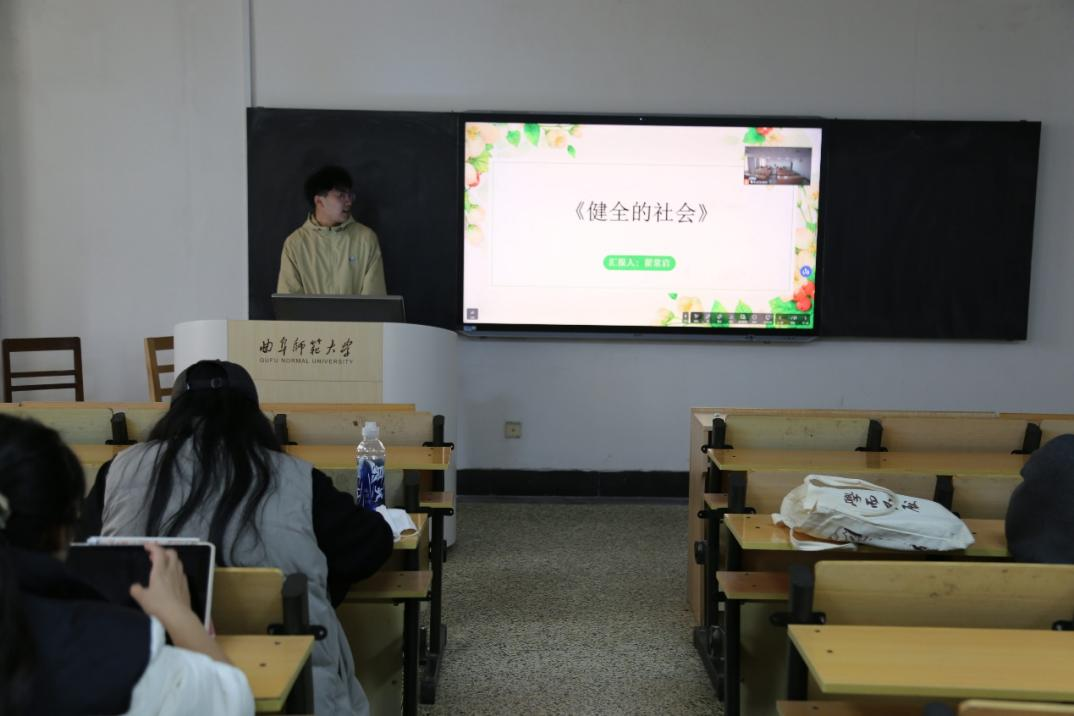 2025级翟常启同学分享的是弗洛姆的《健全的社会》,他结合书籍的历史语境,深入阐释了“异化”在劳动、消费、人际关系等维度的表现,为同学们呈现了弗洛姆以“人道主义共同体”为核心的健全社会改革蓝图,提出理想中的“健全的社会”是什么样的,引发了同学们的深入思考。