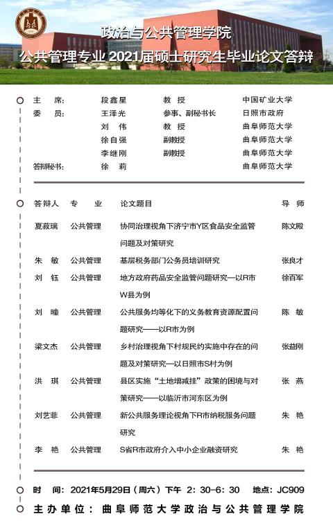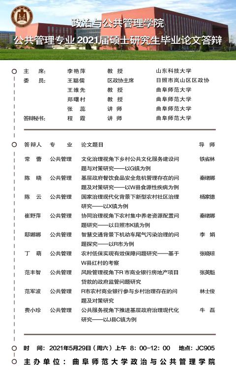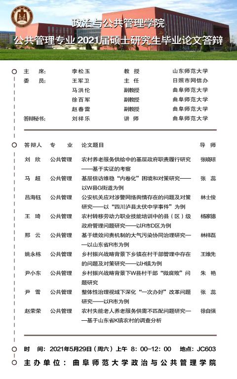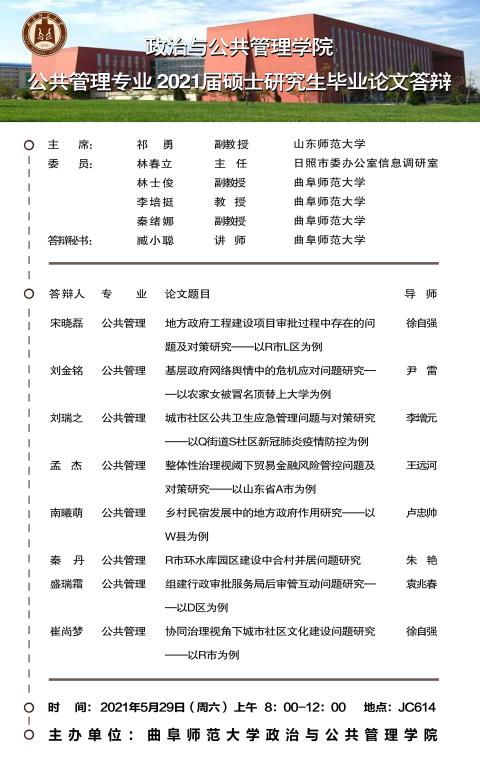 色情论坛 2021届学术型硕士研究生学位论文答辩公告
