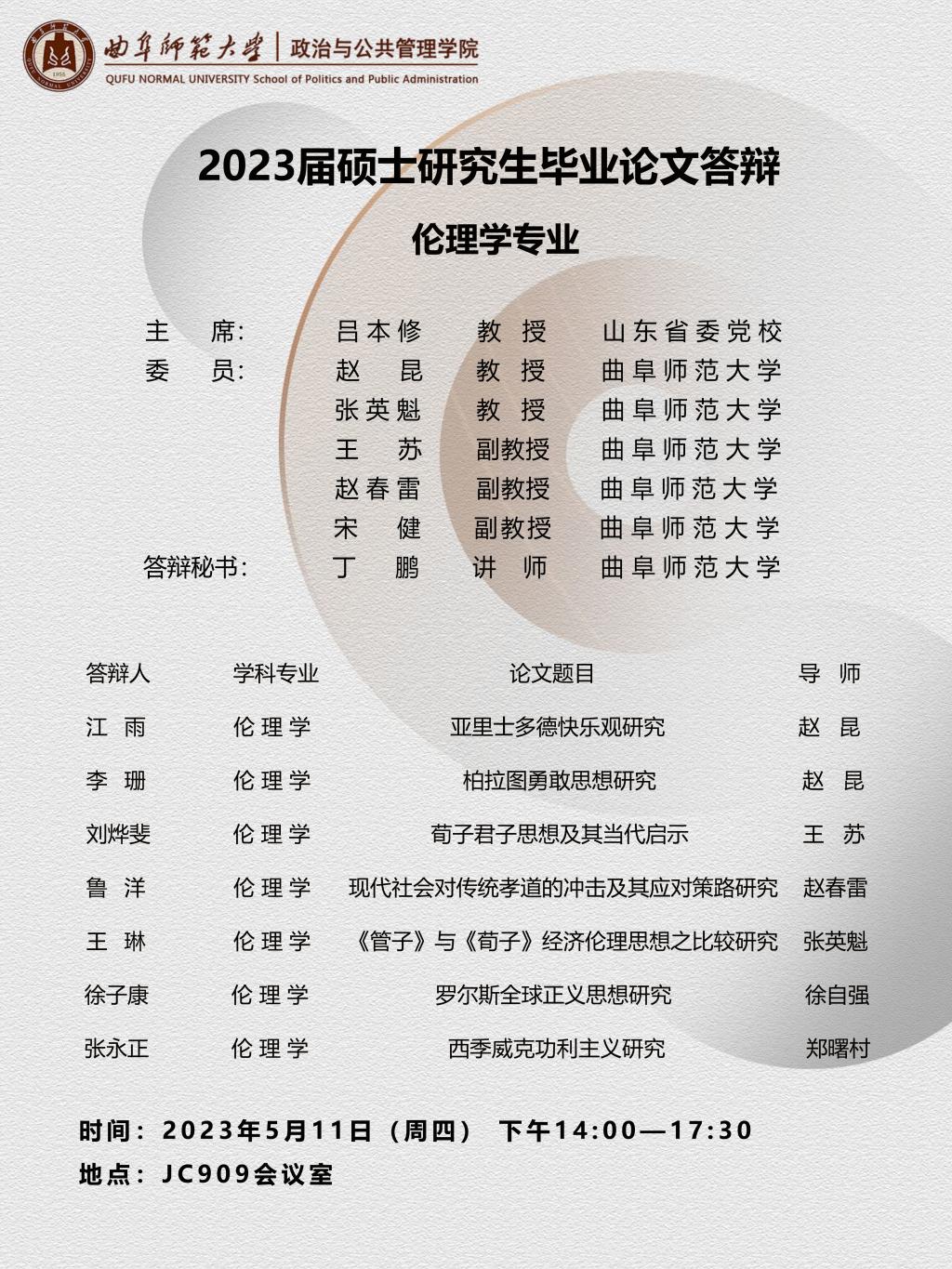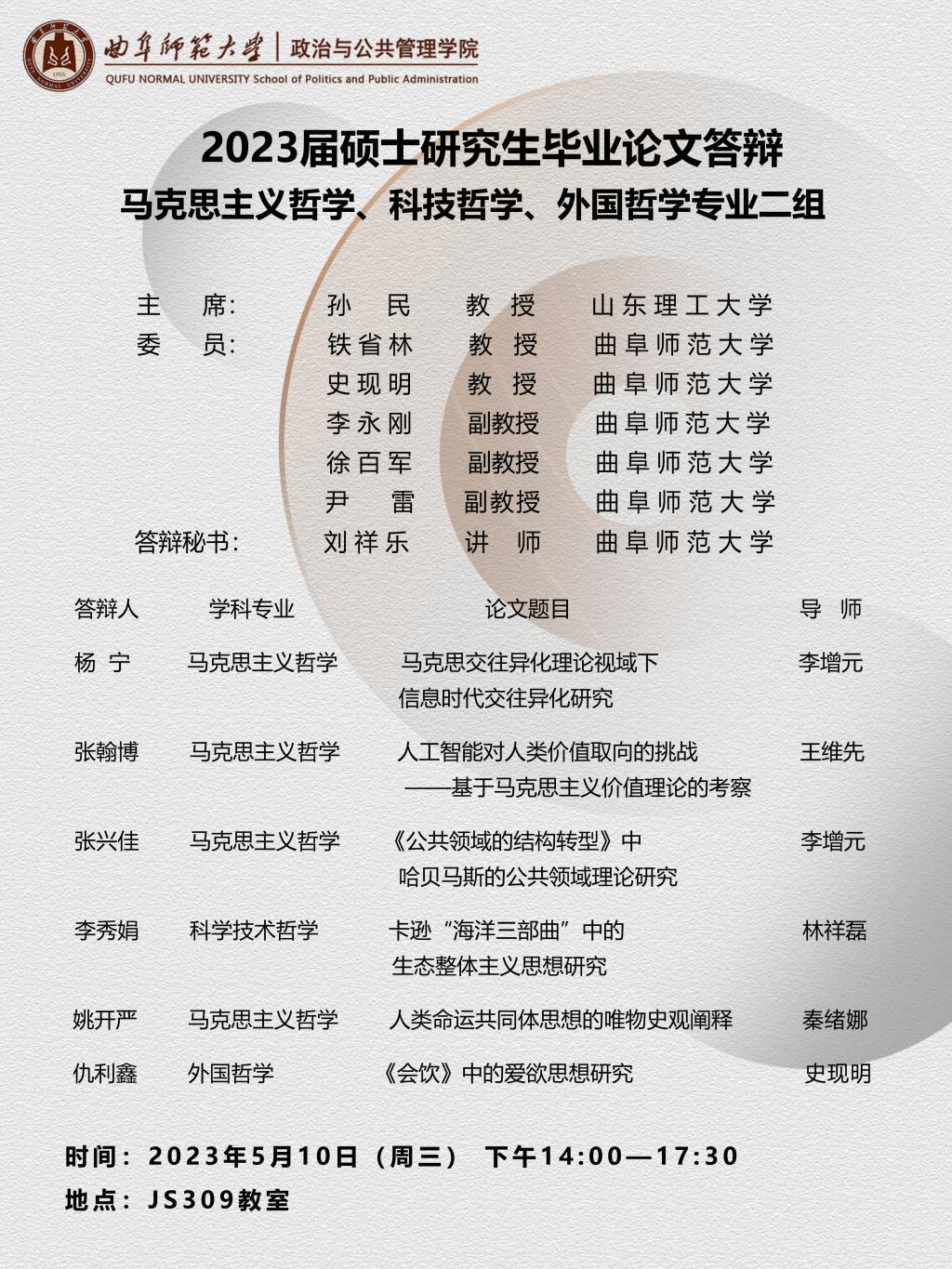 色情论坛 2023届学术型硕士研究生学位论文答辩公告