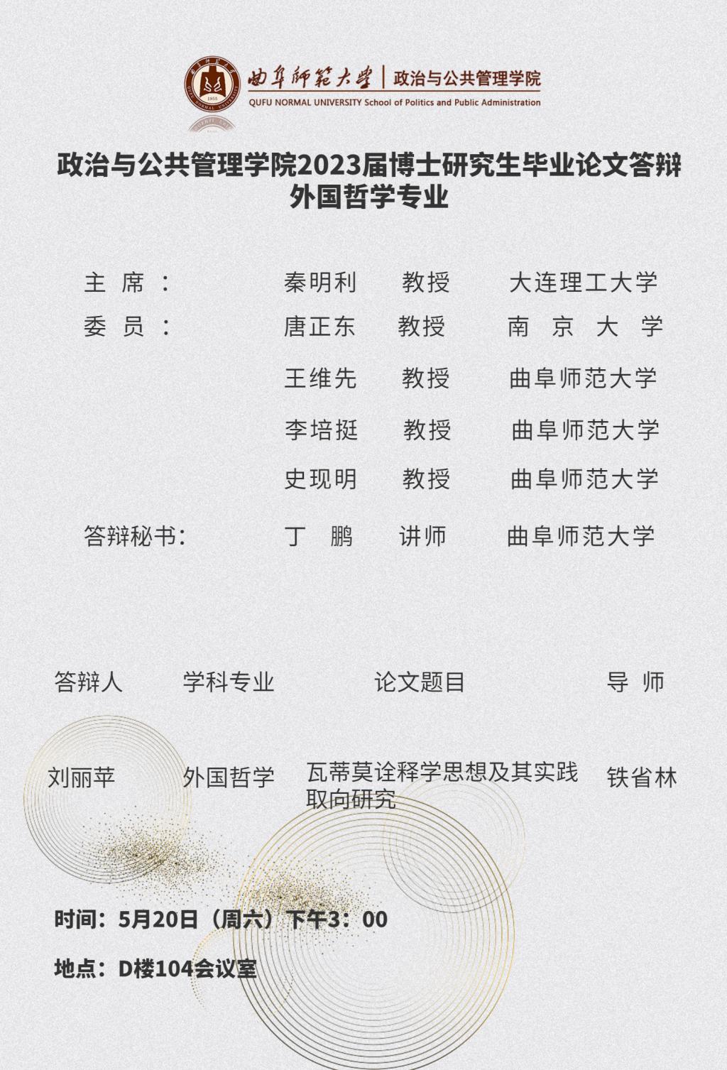 色情论坛 2023届博士研究生学位论文答辩公告