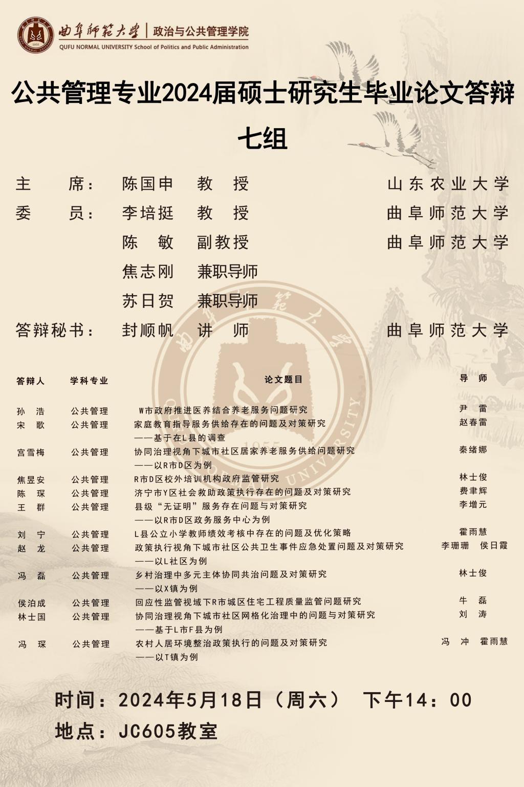色情论坛 2024届公共管理硕士研究生学位论文答辩公告