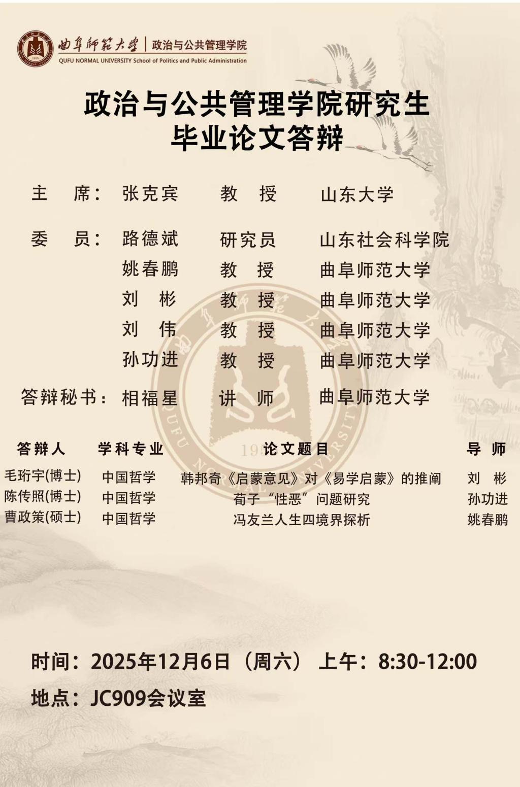 色情论坛 公共管理专业研究生毕业论文答辩公告
