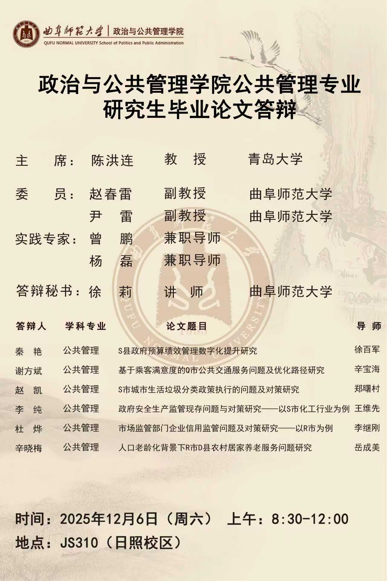 色情论坛 公共管理专业研究生毕业论文答辩公告