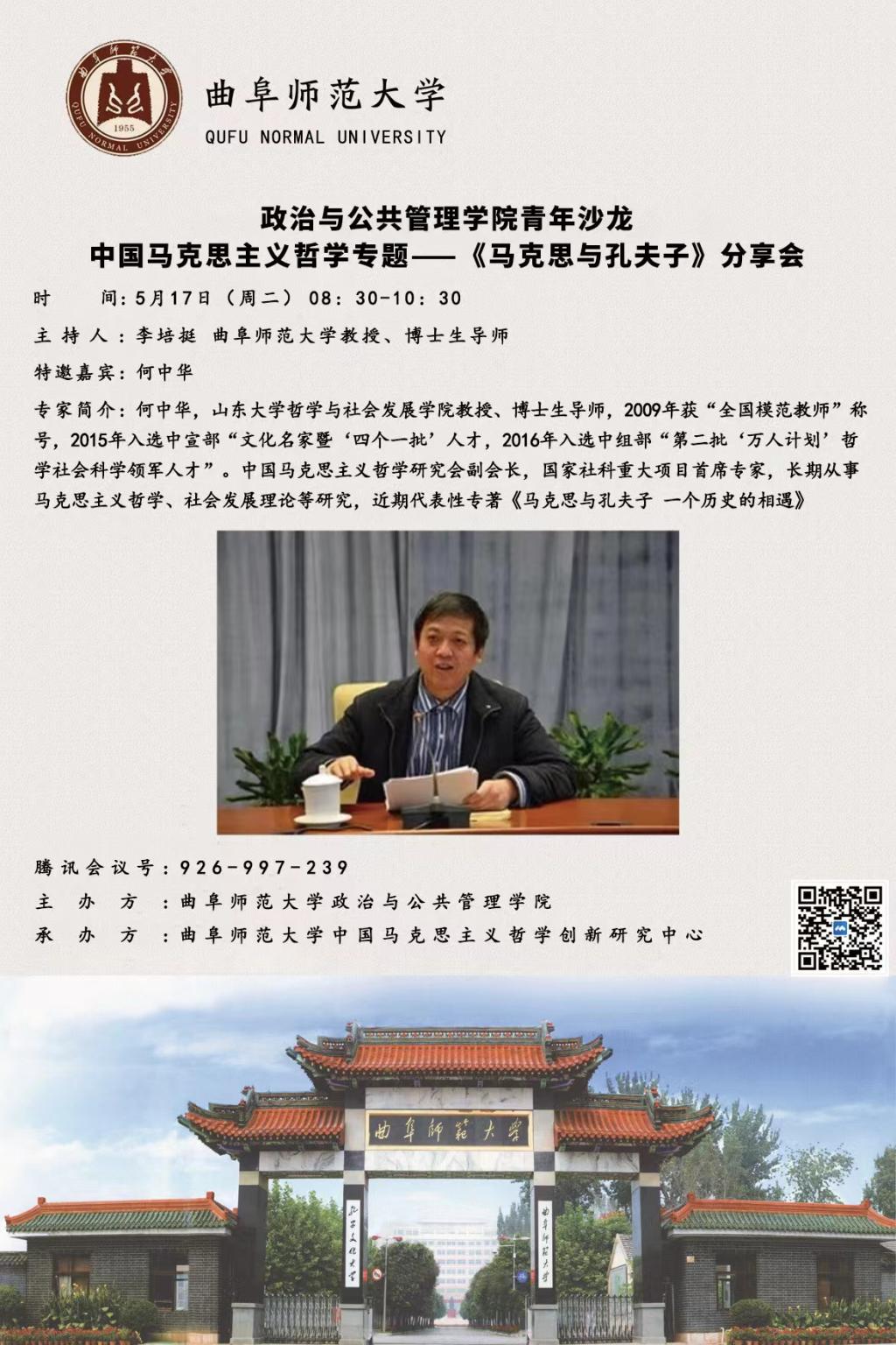 引入青年沙龙学术研讨模式。在学院主要领导的大力支持下,于5月17日上午8:30-10:30线上召开了首期青年沙龙“中国马克思主义哲学专题——《马克思与孔夫子》学术分享会”。本次分享会特邀嘉宾是山东大学哲学与社会发展学院何中华教授,此次活动由学院学科办主任刘伟教授在线指导、孙功进老师点评、李培挺老师主持,李永刚、孟祥兴、刘祥乐、陈碧强、封顺帆、赵松等6位青年教师与院内外师友180人参加。