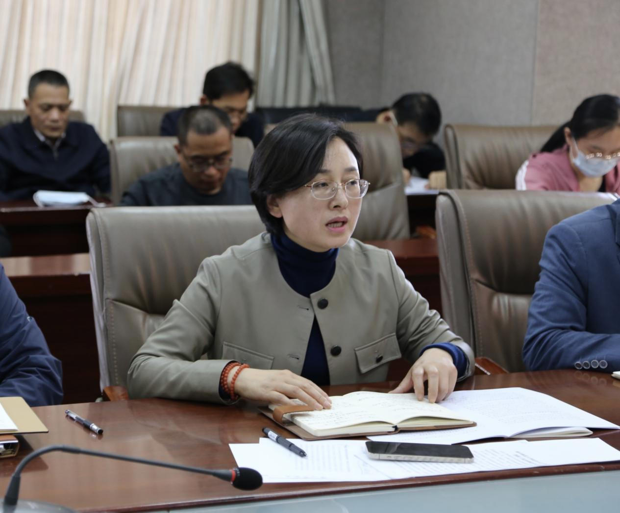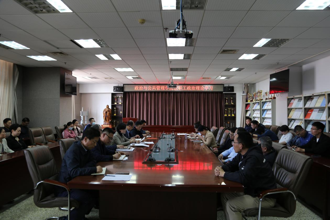 于JC909会议室组织开展教职工政治理论学习会,集中开展师德师风教育,学院领导班子及全体教职工参加学习,本次学习由学院党委书记卢瑞霞主持。