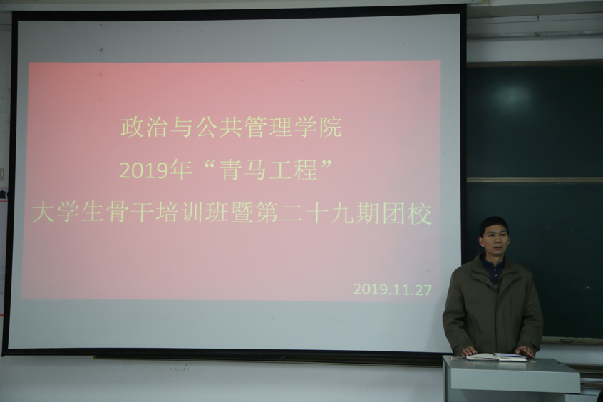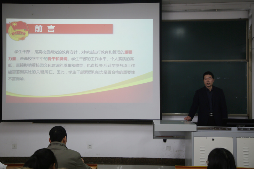 团委书记王元如主持,马克思主义学部党委副书记张忠凯为同学们作了题为“新时代学生干部的素质与能力”的报告,培训班全体学生参加。
