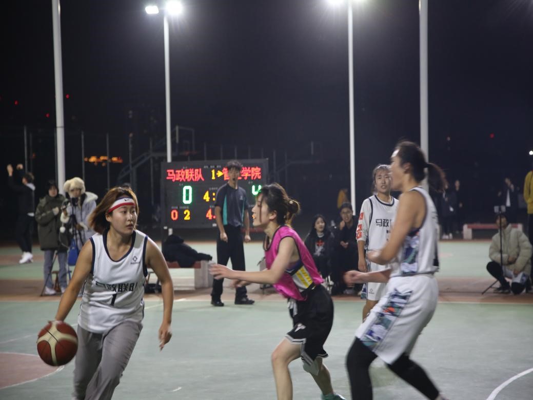 和马克思主义学院学生组成的马政联队女篮对战管理学院女篮“迎新杯”挑战赛于东篮球场成功举行。比赛激烈、扣人心弦。