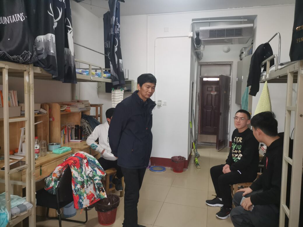 宿舍既是学生生活、学习、休息的地方,又是学生交流思想、培养综合素质的重要活动场所,清新、整洁、安全的宿舍环境对学生个人发展尤为重要。张忠凯进入学生宿舍后,首先对同学们的卫生打扫成果给予了充分肯定。在检查过程中,他发现部分宿舍网线插口存在潜在的安全隐患,提醒同学们进行整改,务必注意用电安全,防范在先,警惕在前,树立高度的安全意识。同时,他再次提醒同学们在宿舍阳台整修工作进行的过程中,尽量远离施工场地,并注意个人财务的保护,出现问题及时上报。