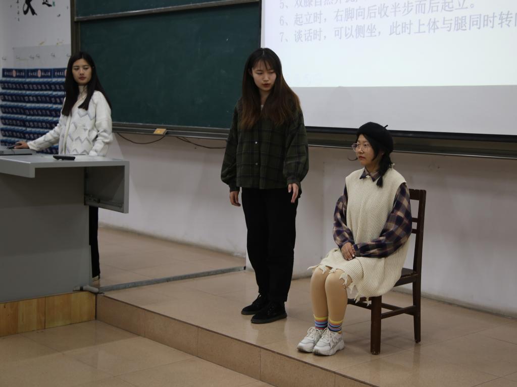 团委书记王元如主持,仪加仪礼仪协会社团成员主讲,团委学生会全体成员参加培训。