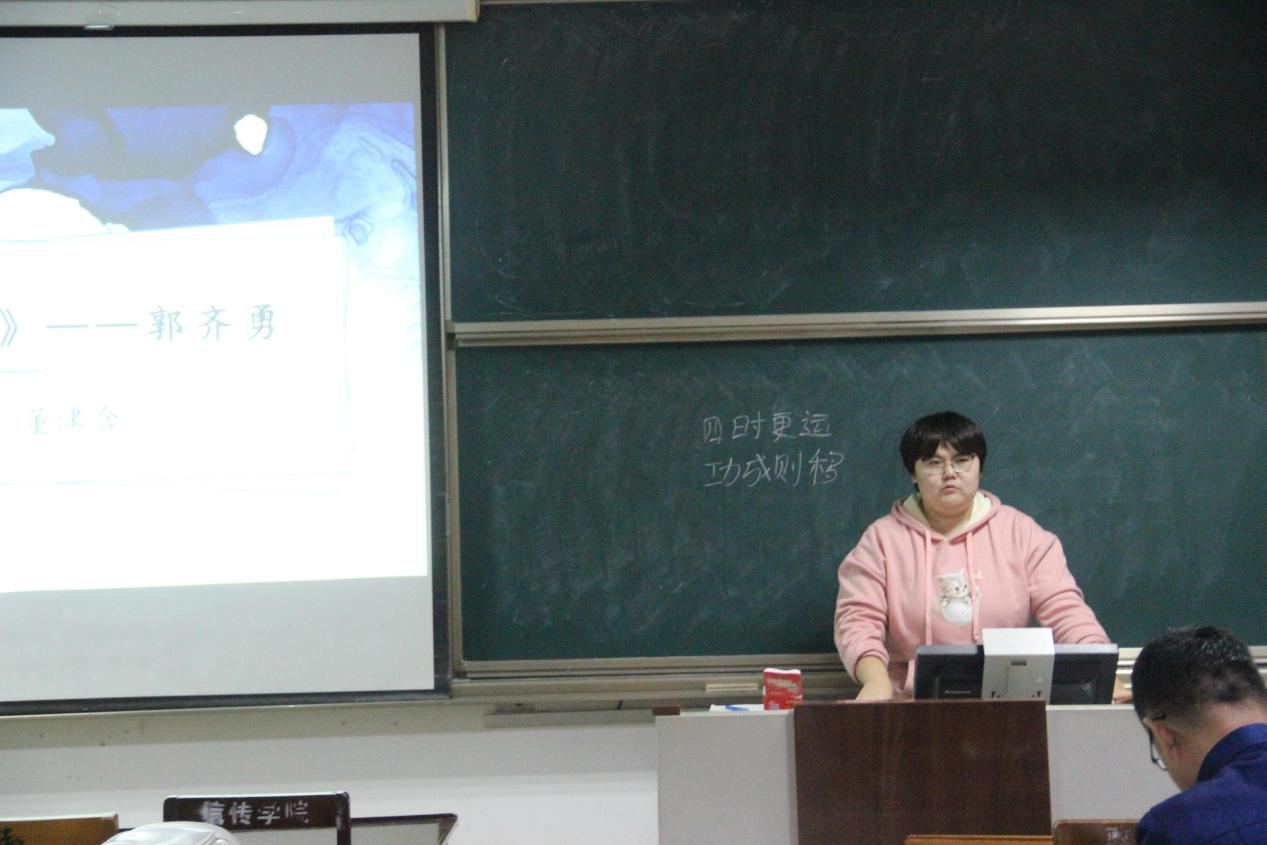 随后,2020级董津含同学就郭齐勇编著的《中国哲学史》一书进行了分享,重点讲述了从先秦到宋明时期中国儒学的发展历程。儒家由中国最著名的哲学家孔子所创立、孟子所发展、荀子所集其大成。儒家思想经过几千年的传承,一直不断发展、与时俱进、昂扬向上,堪称民族脊梁。