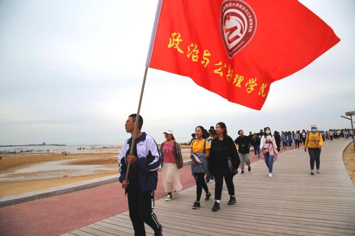 于山海天阳光海岸景区展开“破冰之旅”海边拉练活动。本次活动由学院团委学生会心理部主办,团委学生会主席团成员亲临现场组织活动,2020级全体同学积极参与。