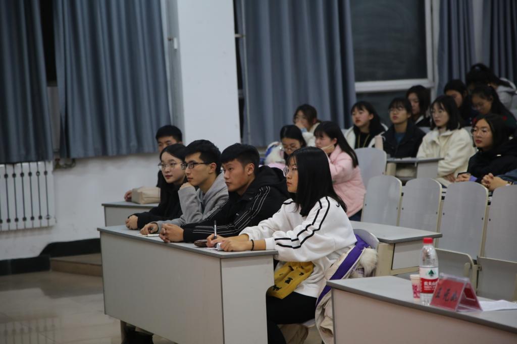 随后,王思贤围绕“大学四年社会实践经历的所思所想”的主题,为同学们介绍社会实践的相关知识,传授自身经验与心得。王思贤先后从是什么、为什么、怎么做及反思等四个方面展开讲解,为同学们提供开展社会实践活动的思维框图。他具体分列暑期三下乡、寒假社会实践等社会实践的不同类型,为同学们提供参加社会实践活动的多种选择,他以“大学四年亲自做过的选题”为切入点,引出自身反思,引导同学们学会聚焦热点事件,不断提升报告学术性与现实性。同时他以自身经历向同学们充分展示社会实践活动的相关事项,有益于同学们形成对社会实践的全面认识。王思贤还着重强调如何开展社会实践活动,在组队、选题、实施与撰写报告方面提供多条建设性建议,进一步加深同学们对社会实践的认识,对同学们今后参与社会实践活动具有重要意义。