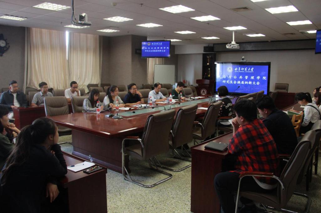 于JC909会议室举行2018级研究生会换届纳新大会。学院院长助理李增元老师,研究生辅导员张楠老师,以及20多名参加竞选的优秀研究生参加了此次活动,大会由张楠老师主持。
