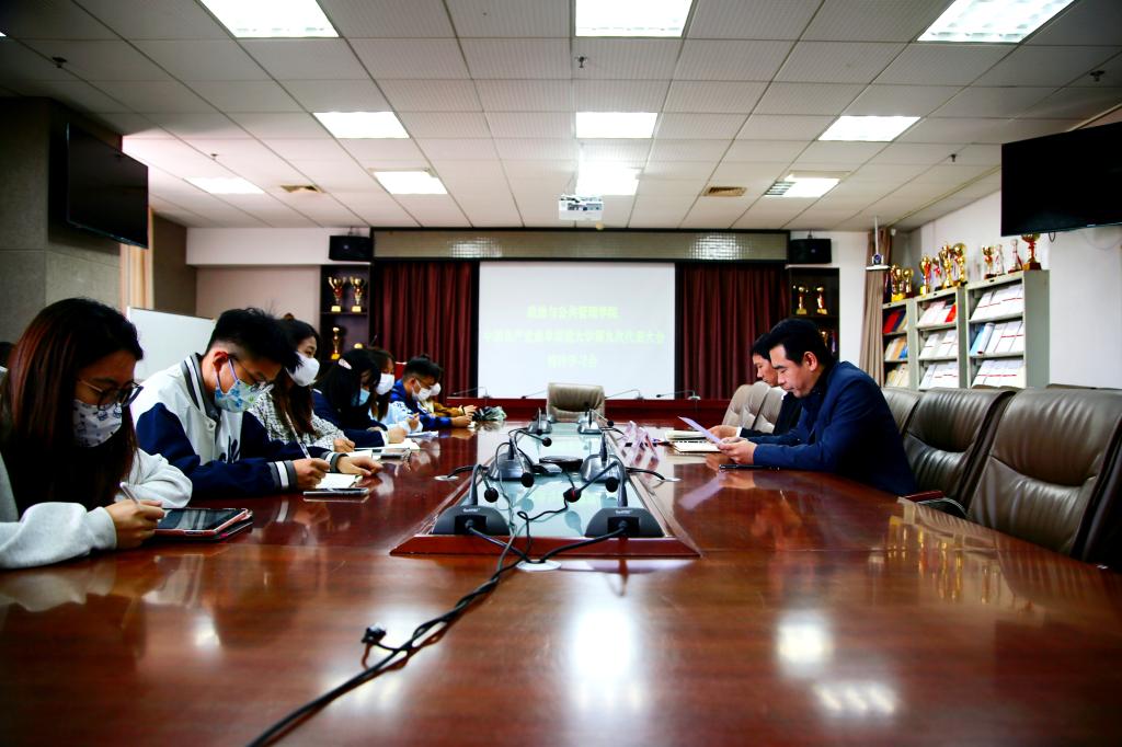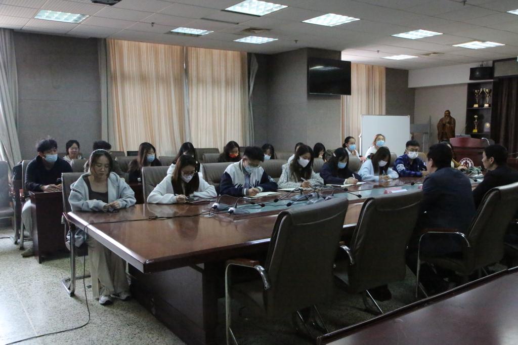 团委、学生会、各年级团支书和班长于JC909集体学习,会议由学院团委书记马腾主持,学院党委组织员王元如出席会议。