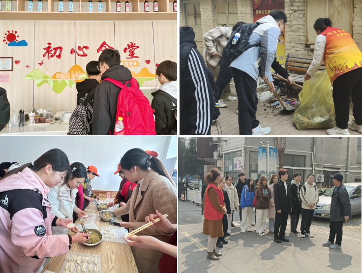 学生参观共享发屋、初心食堂、安泰星河港湾,听社区网格员讲述红馨党建楼栋“1+5+N”模式,利用群众党员优势管理社区各类事物,在社区工作人员的指导下,同学们积极参与社区主题教育学习、清洁家园、包水饺等各方面的服务活动,不仅大大提高了社区的办事效率和工作热情,还让学生们发挥所学,把理论转化为实践,让社区治理工作更有活力、更具朝气。
