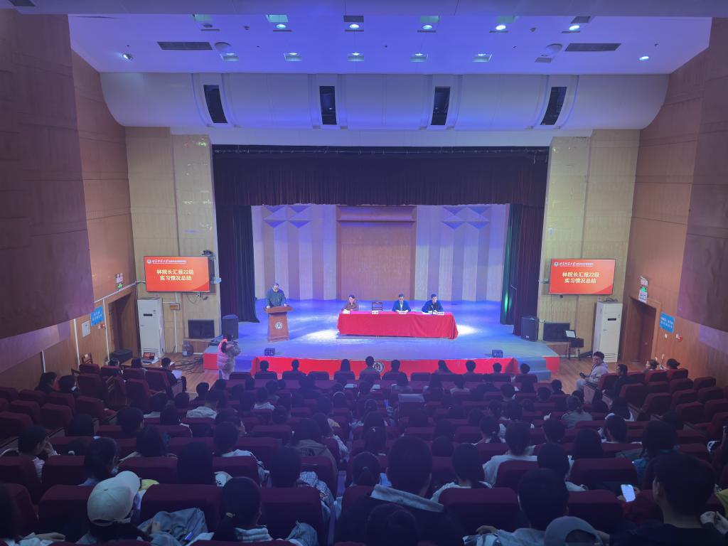 副院长林士俊对2022级专业实习工作进行了总结汇报。他对同学们在实习期间所展现出的坚持与努力予以充分肯定,并对同学们获得实习单位的良好反馈表示诚挚祝贺。同时希望同学们能继续保持这种积极的态度和优秀的表现,在未来的学习和工作中不断取得新的成绩。