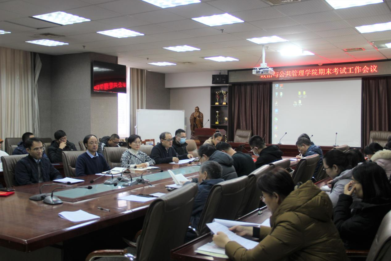 期末考试工作会议,学院领导班子和全体教职工参加此次会议,会议由党委书记卢瑞霞主持。