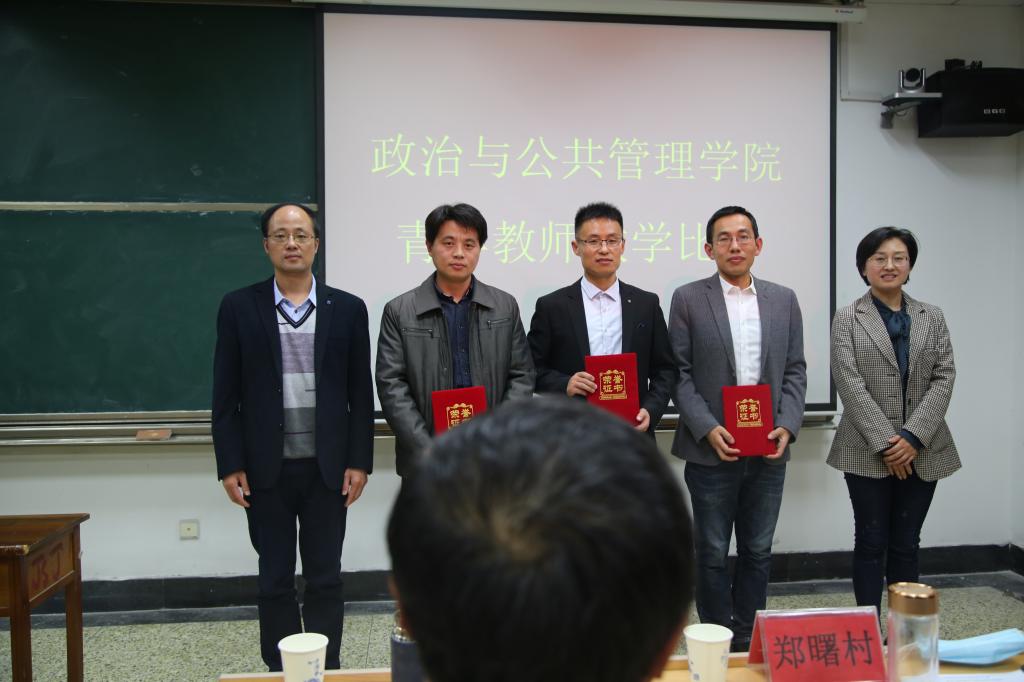 本次比赛采用“集中讲课比赛”方式,以教师观摩,评委现场点评和打分相结合的方式进行。参赛教师的出场次序通过抽签决定,授课内容为教师所承担教学任务的课程,每位教师的展示分为课堂教学和教学反思两部分组成。课堂教学时间为20分钟,教学反思是指选手结束课堂教学环节后,结合本节段课堂教学实际,进行2分钟的总结反思。孟祥兴老师根据中国古代政治思想史,讲解《性善与仁政——孟子的政治思想》、陈碧强老师依据先秦儒学课程,讲述了《易经的占卦与解卦》、程香丽老师围绕公共政策学讲授《公共议程与政府议程》、刘祥乐老师为我们讲解国外马克思主义哲学课程中的《“逃避自由”的心理机制》、臧小聪老师讲解了社会工作中的《个案工作过程》课程、乔文艳老师依托生态哲学向我们传授了《生态学中的复杂性》、李永刚老师带来西方政治思想史课程里的《柏拉图的哲人王治国思想》、李培挺老师为我们讲解管理学原理中的《组织设计之影响因素——三湾改编的课程思政》、张玉志老师此次授课的主题为与逻辑学课程有关的《直言命题的变形推理》、丁鹏老师通过国际政治概论课程向我们讲述了《国际合作的影响因素》。教师们以精彩的课堂设计、沉稳从容的讲授、条理清晰的思路以及与学生积极良好的互动展现了一堂堂精彩纷呈的课堂缩影。在场评委依照其授课内容、方式、态度、以及呈现效果等方面,依次对十位青年教师打分。随后任松峰、李继纲、刘金发、王维先四位老师对本次比赛做出点评。