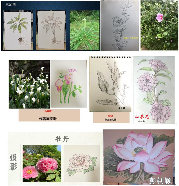 本次活动是本学期《博物学文化与实践》课程的实践环节。这门课程是哲学专业的拓展课程《自然科学概论》和核心课程《科学技术哲学》的先行课程,在开展本次实践活动之前,同学们已经在课程中学习并了解了中西方博物学文化传统,学会了使用“百度AI体验中心”手机小程序(图1)进行植物识别,并学习了植物科学画的绘画技巧,完成了“拍植物”、“认植物”、“画植物”(图2-3),以及“校园识花草”实践环节(图4)。
