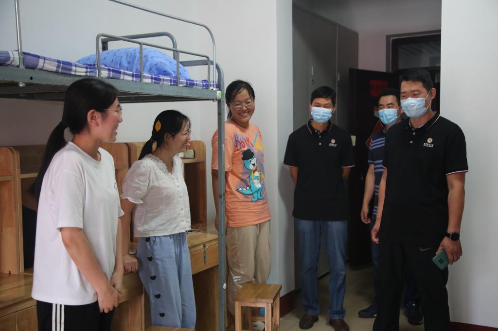 老师们每到一个宿舍便亲切地与新同学们交谈,详细询问新生的家庭情况和入学感受以及对即将开始的大学生活的期待。老师们表示,希望同学们尽快适应大学生活,制定目标,做好规划,开启新的篇章;同时提醒同学们要注意个人生命财产安全,安全用电,随手锁门,保管好个人财物;在疫情封校的情势下,要注意个人和寝室卫生。