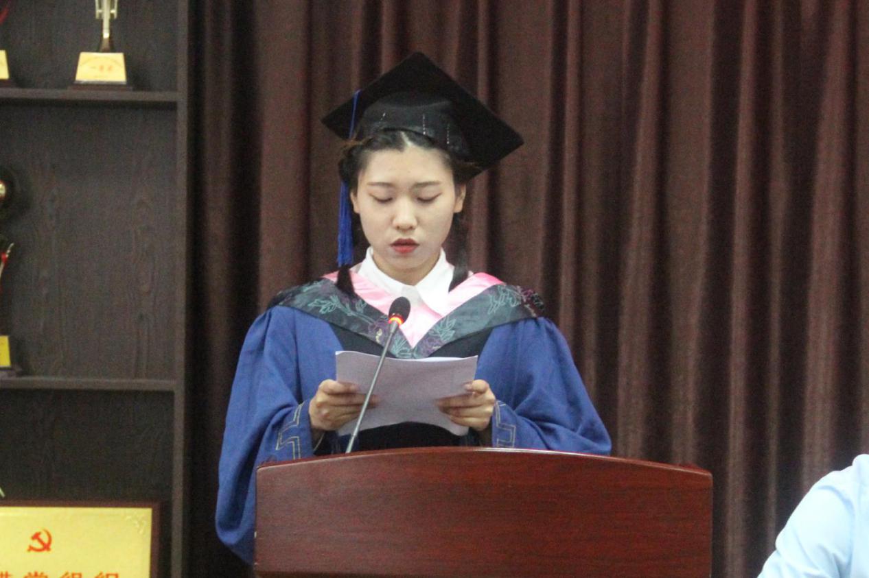 导师代表郑曙村教授为同学们带来毕业赠语,他与毕业生们一同回忆过去三年的难忘岁月,词字间流露着对同学们的不舍,叮嘱同学们要做有梦想的人、踏实的人、正直的人,祝愿同学们能够一帆风顺,事业有成。毕业生代表铁小茜、在校研究生李洋分别上台发言,铁小茜对的母校悉心培养和老师的殷切教诲表达了深深的感恩之情,李洋代表全体在校生向师哥师姐送上了真挚的祝福,将继续发扬曲园政院人的优良品质,坚守正道,追求真理。
