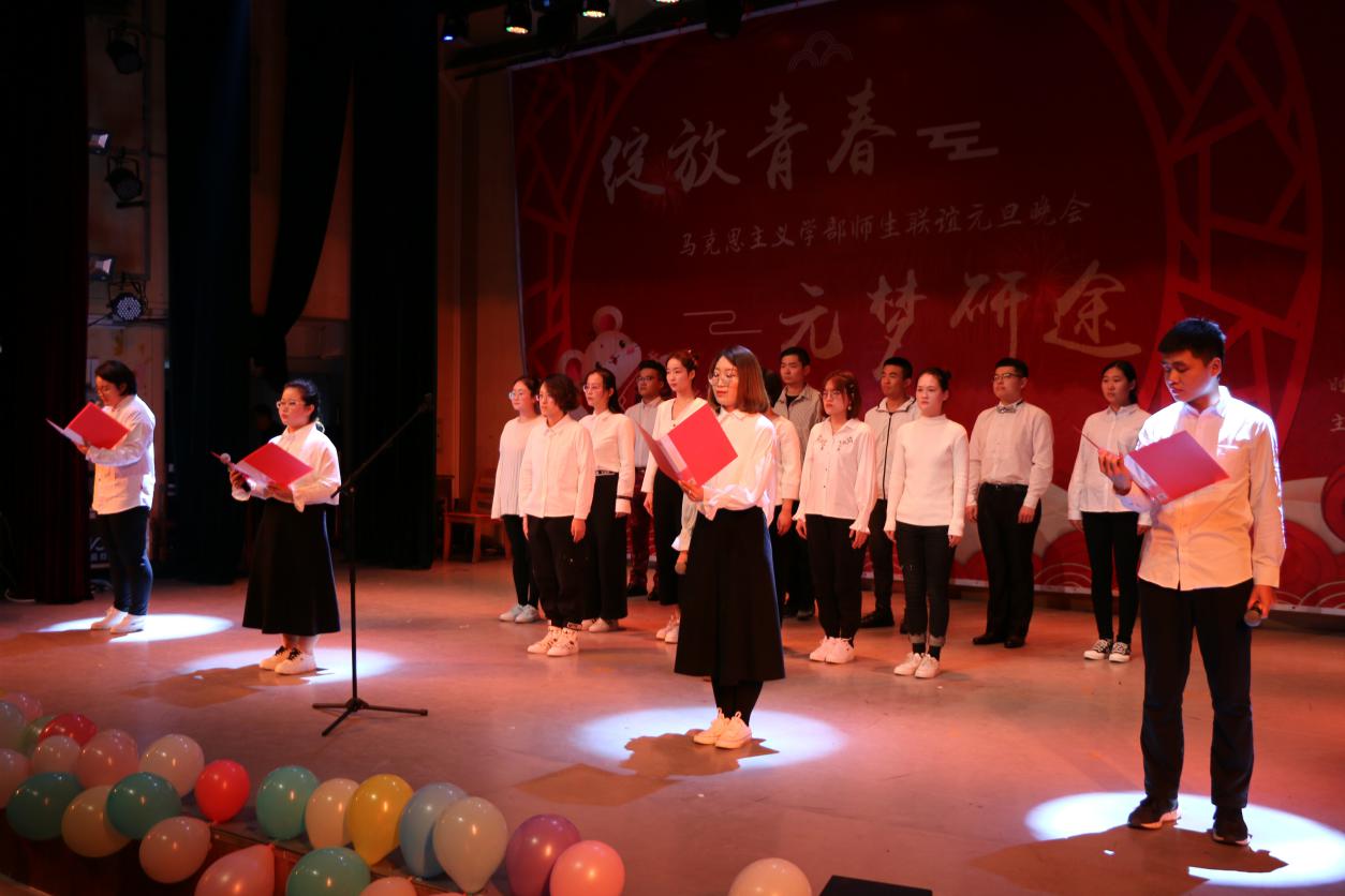 欢快的开场舞《盛世花开》拉开了晚会的帷幕。同学们带着青春的活力,踏着动感的节拍,先后闪亮登场,集中展示了马克思主义学部学子们蓬勃向上、奋发进取的良好精神风貌。
