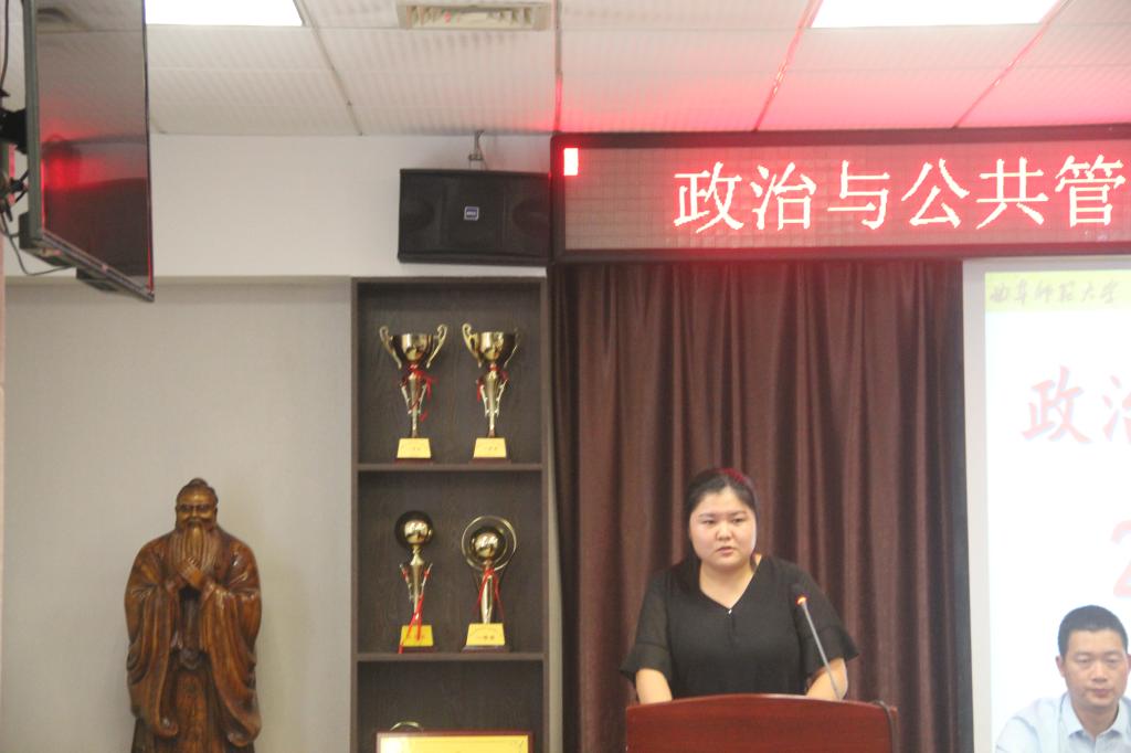 的研究生要坚定政治信仰,做讲政治的政治人,既要目标高远,又要保持定力,不懈奋进,做潜心研究的读书人和严谨治学的力行者。硕士新生代表李洋则分享了自己的考研之路,并表达了未来研究生学习生活的努力方向:明确目标,自主创新;博采众长,厚积薄发;修身立德、志存高远。2018级的刘喆同学代表在校生发言,她分享了关于学术研究和科学实践的经验,并且鼓励同学们在学术研究之余,要多参加学校与学院组织的各种学术与文体活动。