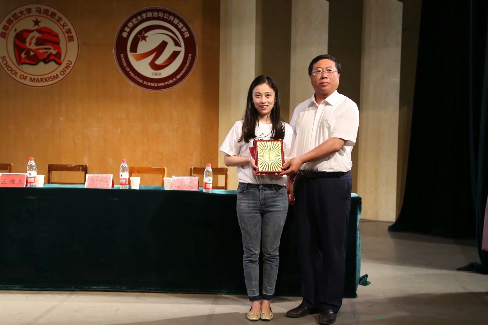 在颁奖阶段,宋钧文宣布省优秀毕业生名单及2019届院长奖学金获奖名单,李安增、王维先分别为他们颁发证书并进行合影留念。伴着《曲年锦时》的悠扬歌声,两位院长为全体毕业生发放学院纪念品,仪式达到了高潮。