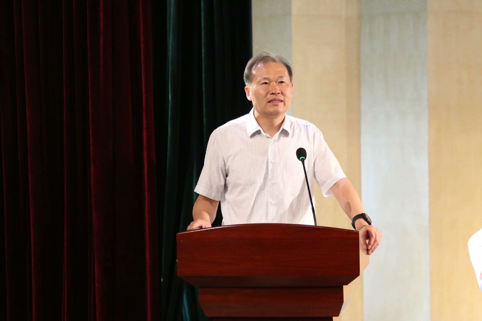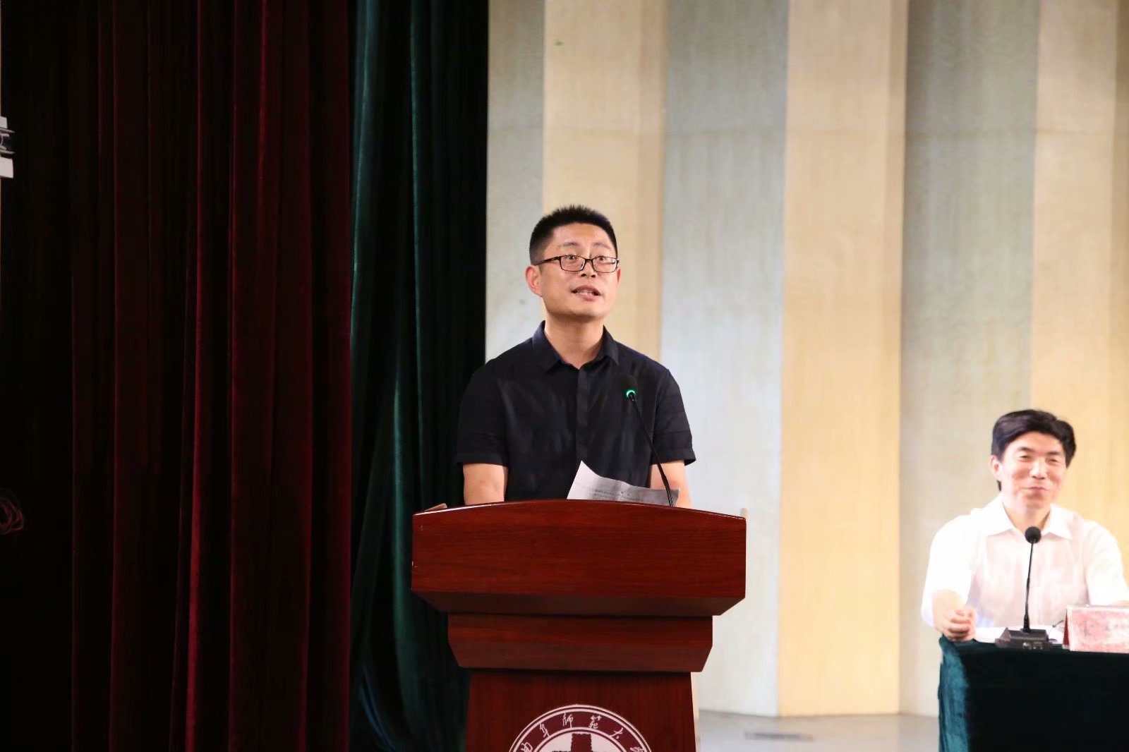 随后,林祥磊老师给同学们带来毕业赠语。他希望同学们能够永远做有道德的人,“做事先做人”。他的语言风趣幽默,赢得台下阵阵欢笑,词字间流露着对同学们的不舍,他希望同学们能够以德立身,展翅翱翔。