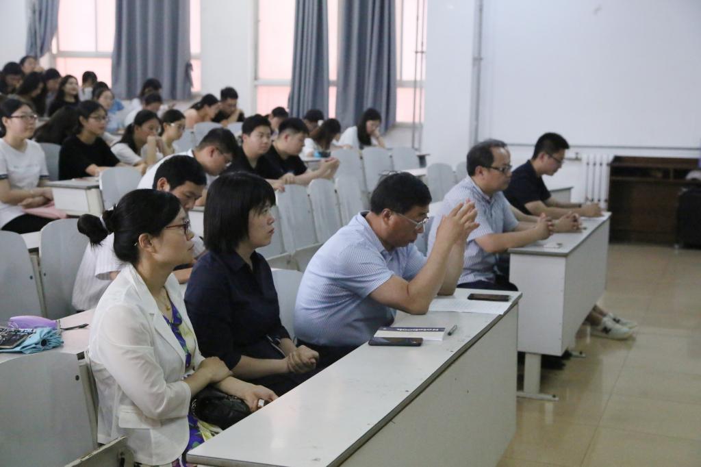 院长王维先、副院长林士俊、院长助理李增元、团委书记王元如、研究生辅导员葛瑞瑞、实习指导教师张蕊、林祥磊应邀出席。大会由王元如主持,2016级、2017级全体实习学生研究生代表积极参加。