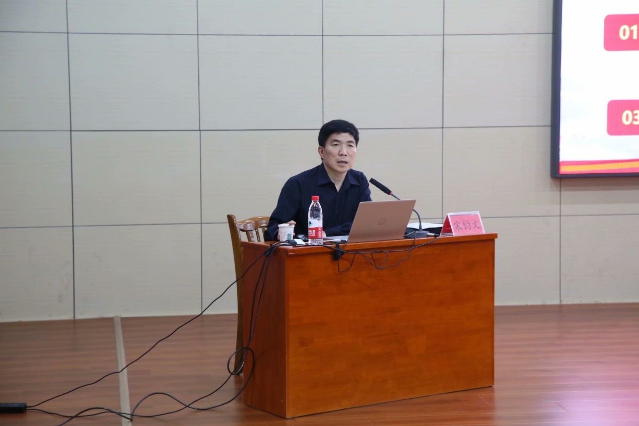 本次培训会的主题是“革新与坚守——改革开放四十年的交响”,宋钧文从“回望改革开放路”、“天翻地覆慨而慷”、“心性坚定任沧桑”、“诸君大任勇担当”四个部分进行讲解,着眼于新时代改革开放四十周年的变与不变,带领大家回望四十年的峥嵘岁月。宋钧文从中国改革开放的起步阶段、加速发展阶段、全面深化阶段,引领同学们回顾改革开放之路,介绍我国改革开放的现状。随后,宋钧文向同学们介绍了改革开放四十年带来的巨大变化:民生状况得到巨大改善,人民生活水平提高;体系完整体制逐渐健全;国家社会得到很好的治理;科技发展突飞猛进;国际地位空前提高。宋钧文强调,中国改革开放以来取得的巨大成就不是靠任何国家恩赐,靠的是人民的艰苦奋斗、自立更生。同时,宋钧文通过记录视频与参会者一起回顾中国人民的奋斗历程,在场听众深刻感受到改革开放辉煌背后的不易。最后,宋钧文寄语新时代青年人:要有爱国明理的正气,蓬勃向上的朝气,迎难而上的勇气。站在改革一线敢担当、勇作为,为实现中国梦贡献自己的力量。