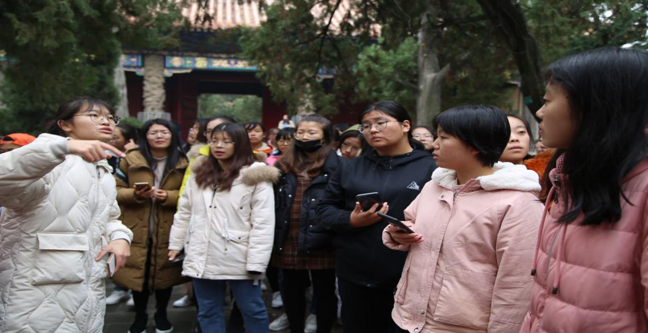 18日,在我校历史文化学院学生导游的讲解下,同学们先后参观了孔庙、孔府、孔林。走进先贤的思想世界,不仅让同学们对儒家思想有了更加全面、深入的认识和了解,还增强了对祖国传统文化的憧憬与热爱,感受到曲阜的古风古韵与人文情怀。