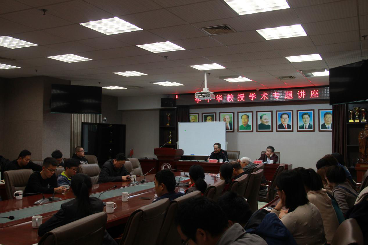 报告会上,李中华教授从五个方面讲述国学的当代价值,第一,普世关怀的人文精神,李中华教授认为,中国国学最突出的核心价值或理论价值是它独具特色的人文精神,“人文”乃专属人类社会活动所创造出来的精神、文化、理念及其所具有的价值内涵。因此,我们不能把儒家的道德关怀仅仅限制在伦理或政治领域,其更重要的意义乃是对“人”的发现,对人的本质的认识,对人的主体性的揭示,也是对人作为本体存在的价值体认;第二,“天人合一”的思维方式,他认为,“天人合一”的思维方式,是把包括人类在内的整个自然宇宙,看做是一个有机、有序、不可分割的整体,是一个动态的、模糊的和充满生机的大化流行,“天人合一”的思维方式及其价值理念,在中华国学中得到普遍的推广并获得最基本的认识论意义,即主体与客体、思维与存在、精神世界与物质世界不是简单的二元对立;第三,“和而不同”的共生哲学,李教授指出,和谐理念是中华民族集体智慧最先思考的问题,中华民族“和”的哲学或和谐理念的实践意义,正在于它能够指导我们最大限度地化解和匡正人类面对的两大基本矛盾所引发的各种危机,使人类的生存发展真正能沿着体现“和而不同”理性智慧的大道前进;第四,“趋时求变”的“日新”理念,他认为,人类的活动要适应外部世界的变化,从而达到人与自然、人与社会,乃至人与人之间的平衡、协调和统一,否则便不能发展,也不能生存,“日新”是与“适变”相互联系的重要理念,是中华民族生存智慧中不可或缺的思想文化资源,因此,只有在继承的基础上加以创新,才能该保持大道的存在,只有在创新的前提下加以继承,才能使大道畅通;第五,“夕惕若厉”的忧患意识,在中国古人看来,一个缺少或没有忧患意识的民族,无论当时如何强大,总免不了最终走向衰败乃至灭亡,正确的态度应该是保持“夕惕若厉”的忧患意识,不能在“丰功伟业”面前骄傲自满,自以为是,“是故,君子安而不忘危,存而不忘亡,治而不忘乱,是以身安而国家可保也。”“其亡,其亡,系于苞桑”,应该成为中华国学忧患意识的座右铭。此次报告会内容深具高度、深度、广度,引发大家对国学问题的深切思考,与会人员表示受益匪浅,收获颇丰。