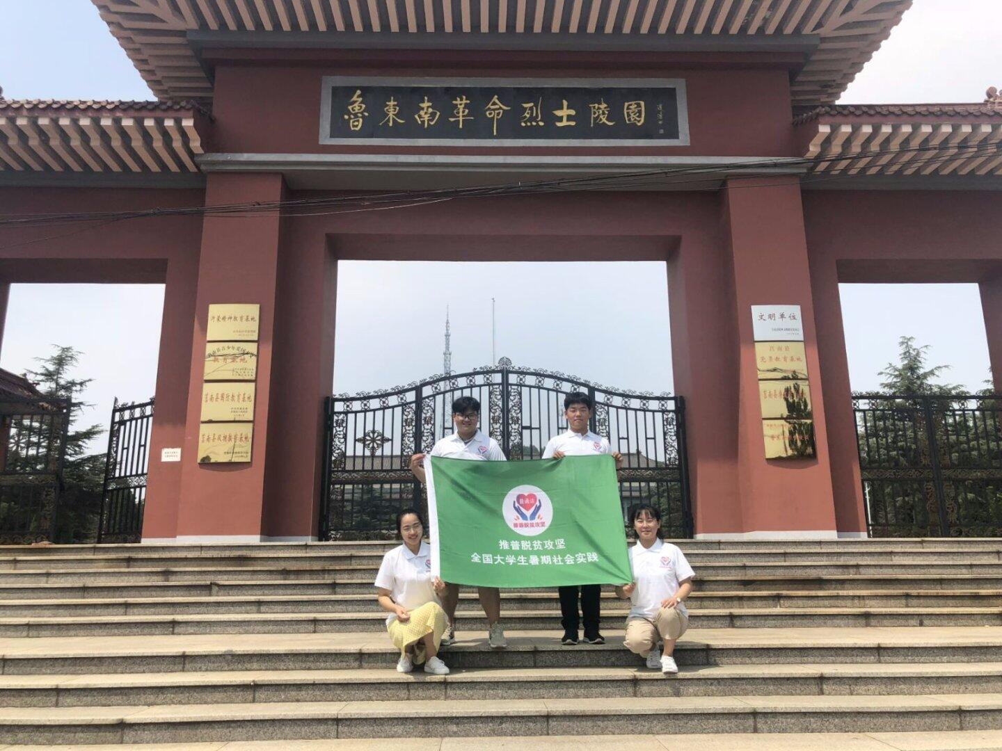 图为实践队员在鲁东南烈士陵园前的合影。中国青年网通讯员 王伟娟 摄